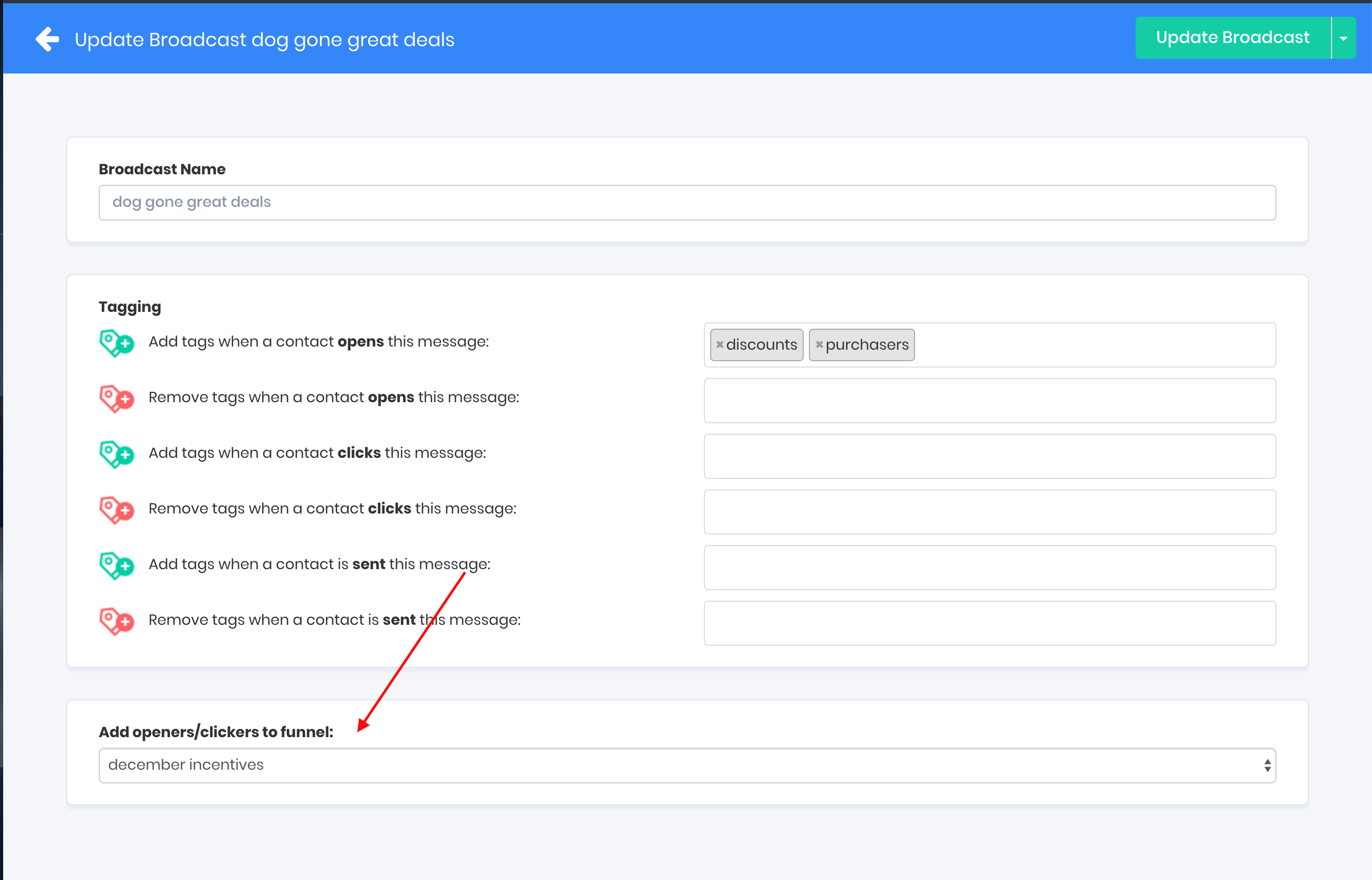 Click the Actions button on the funnel being triggered from the broadcast and click "Deactivate".