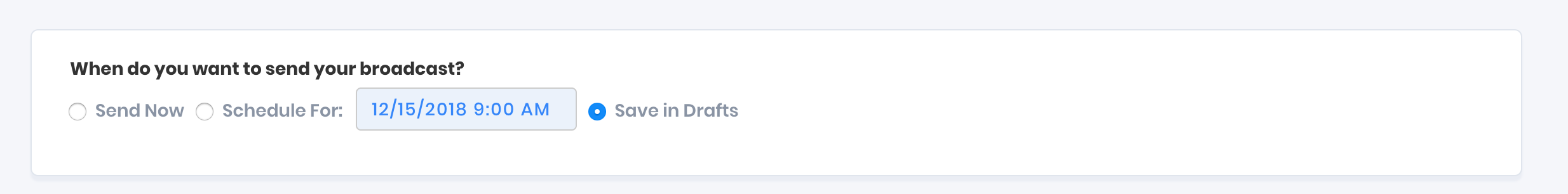 By default your broadcast will be saved as a draft until you're ready to schedule it.