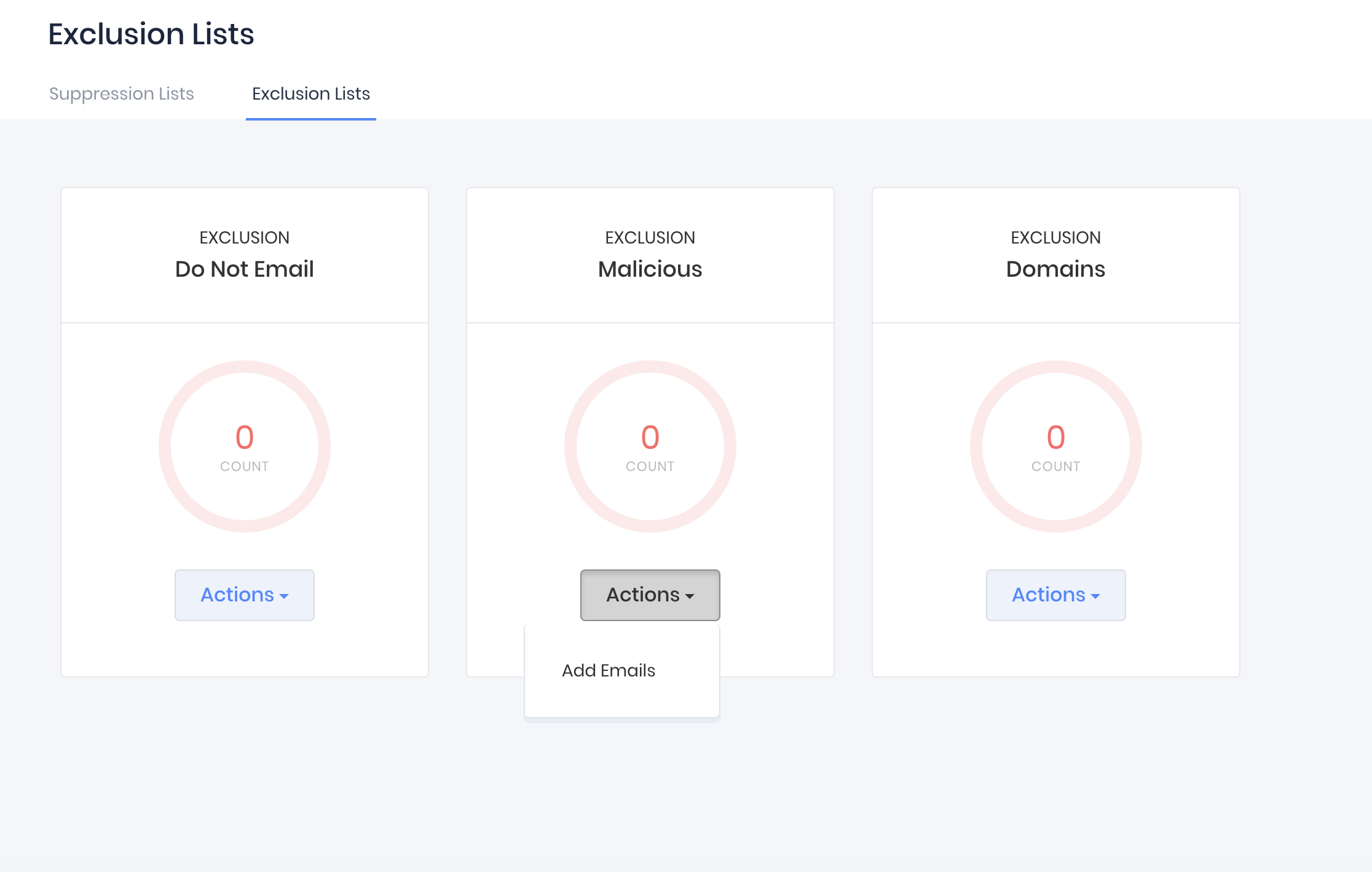 Use the Actions button on an exclusion list to permanently ban contacts from your account