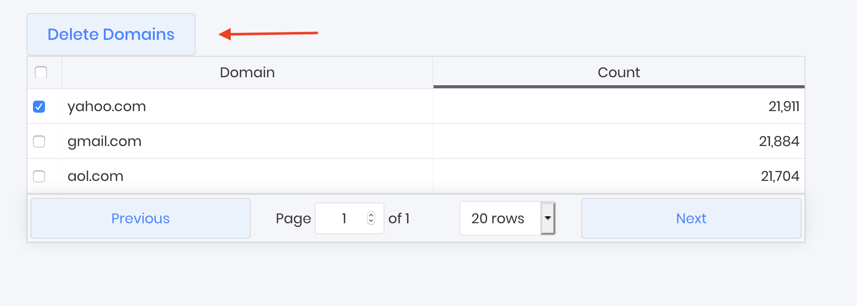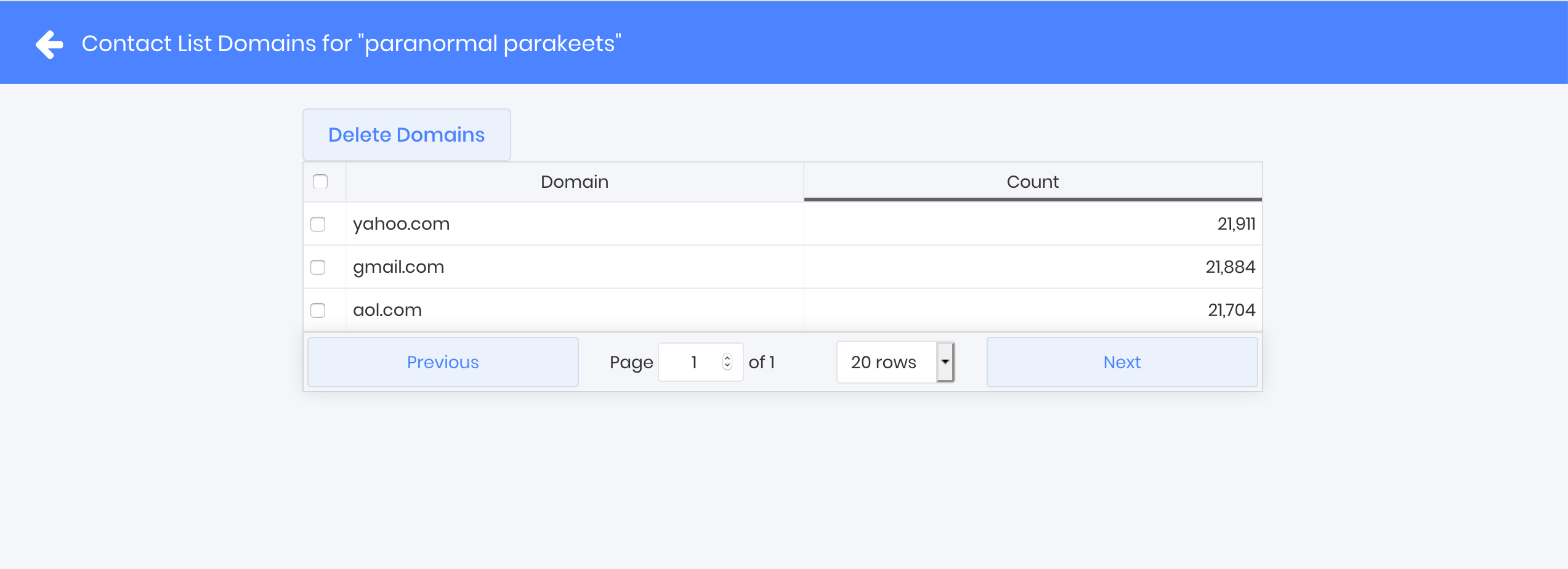 You'll see a list of all your domains sorted by largest number of contacts per domain