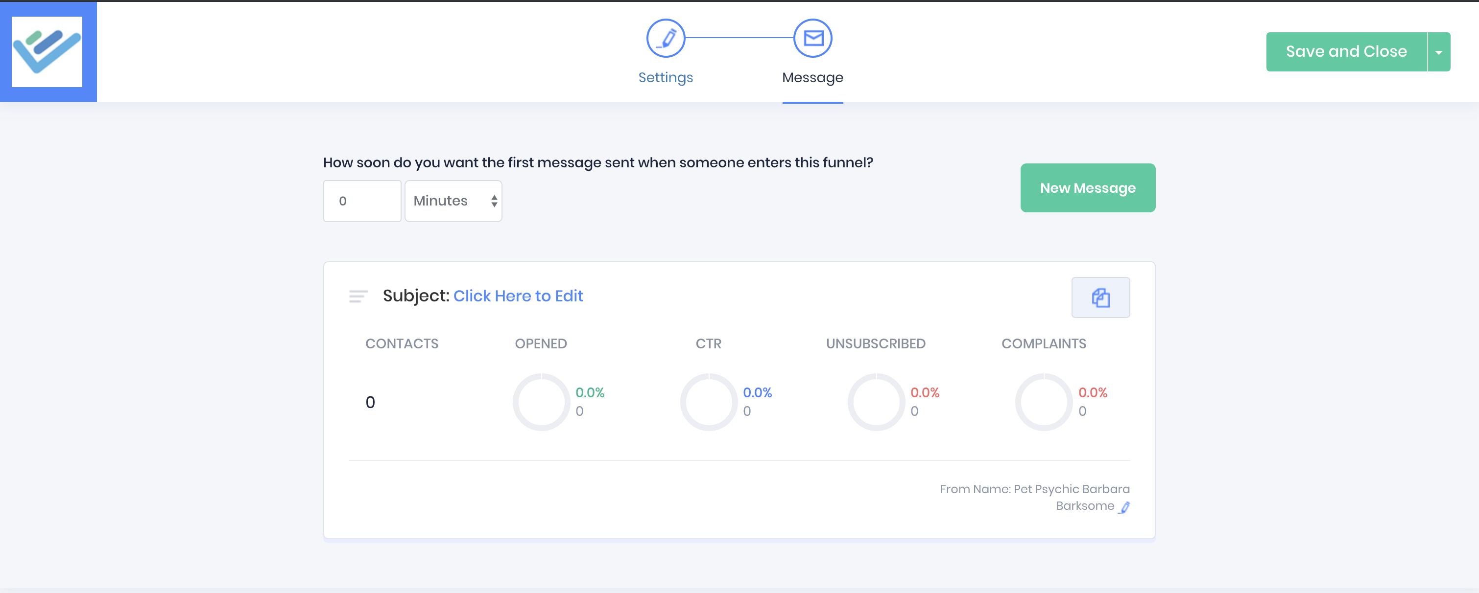 After you complete the settings page and select your email composer, you'll be taken to the funnel messages page