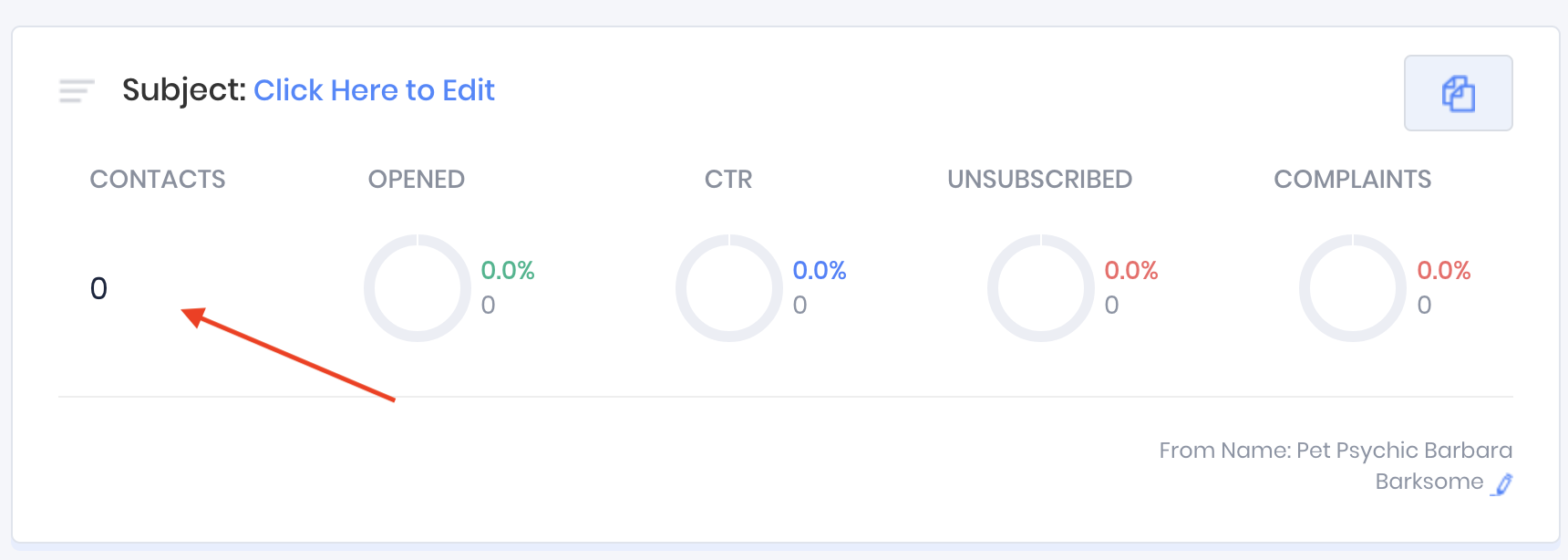You can see the number of contacts who have received each message on the left side of the card under "contacts"