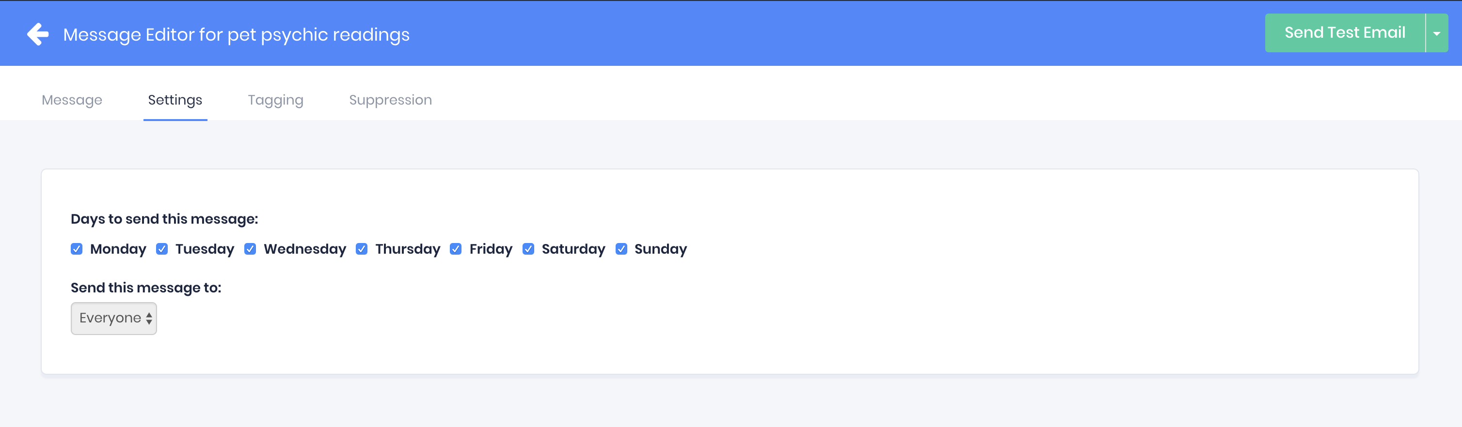 Your automated email messages are sent out every day of the week by default
