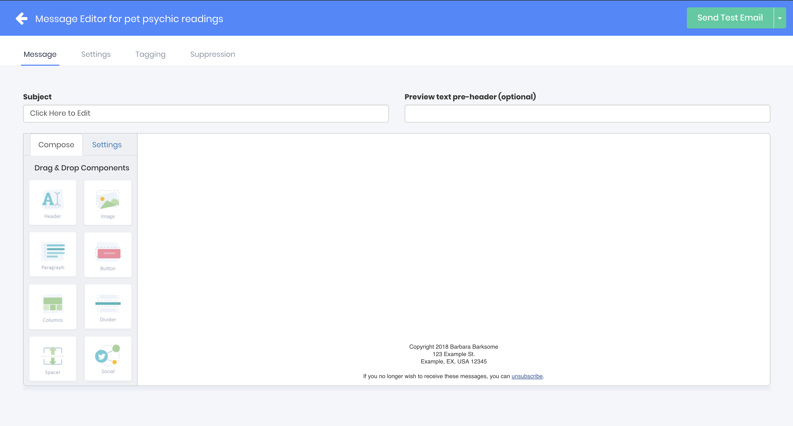 For documentation on using the drag and drop email composer, including many helpful animated gif demonstrations, see the Designing your email series