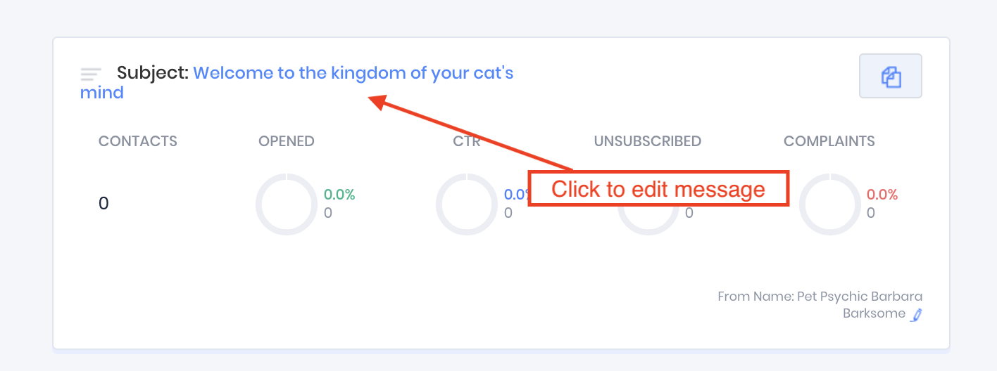 Click the subject line on a card to edit the message