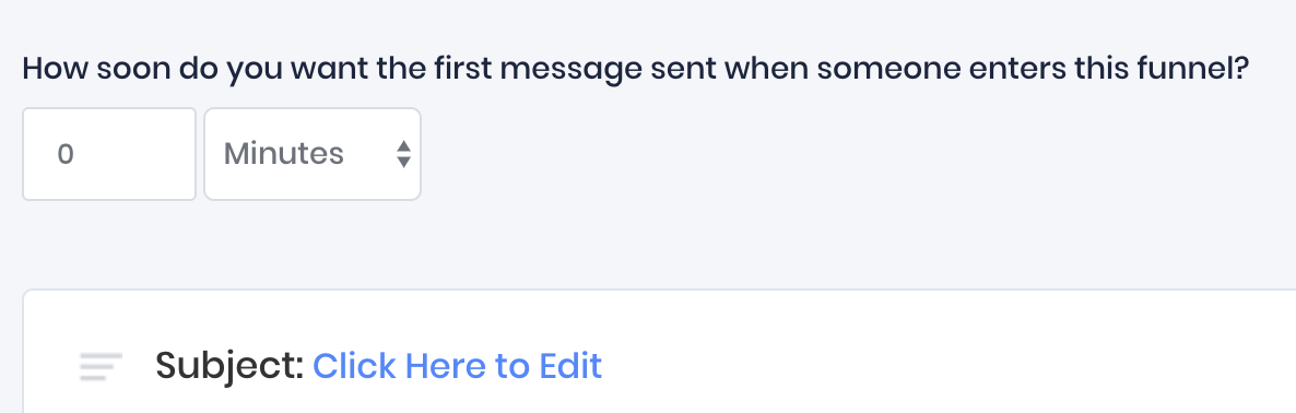Pay attention to the first timer at the top of the page. This is how long to wait before sending your contact the first message in the funnel. By default, the first message will be sent immediately.