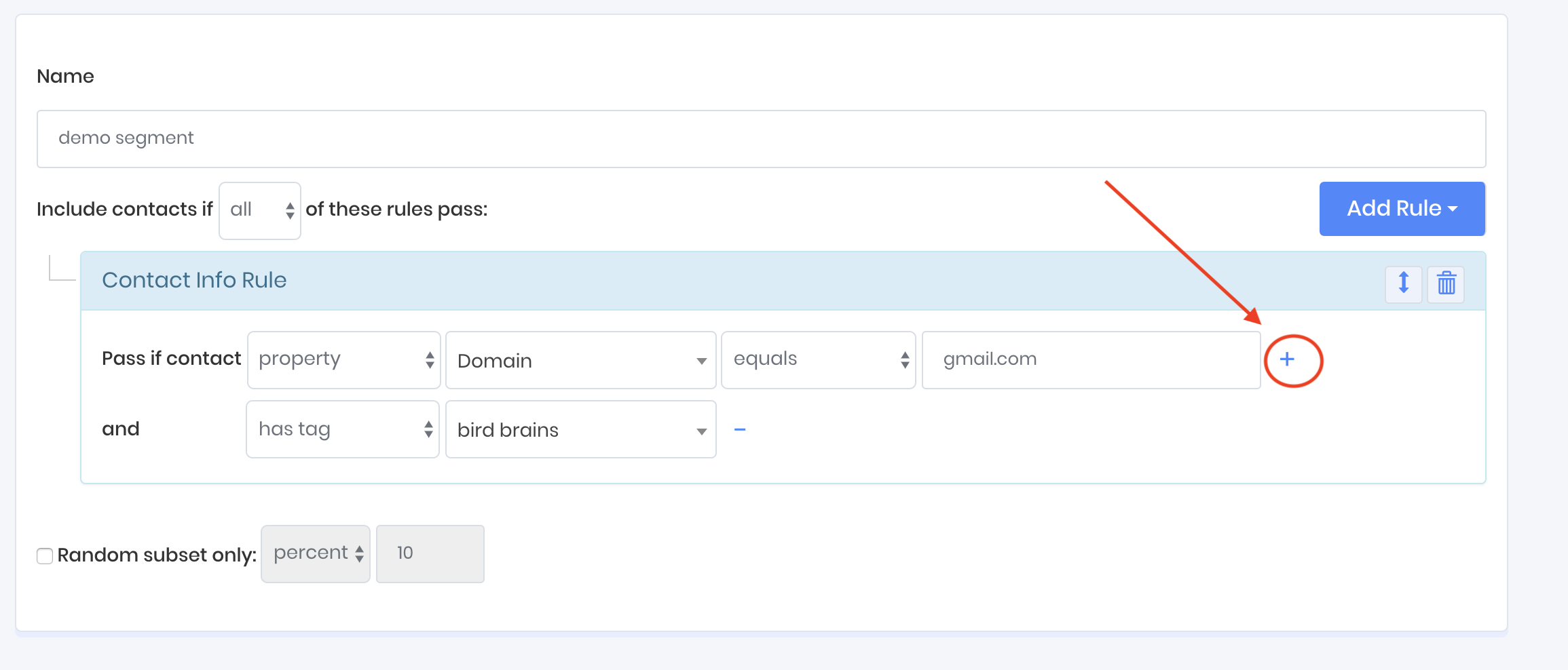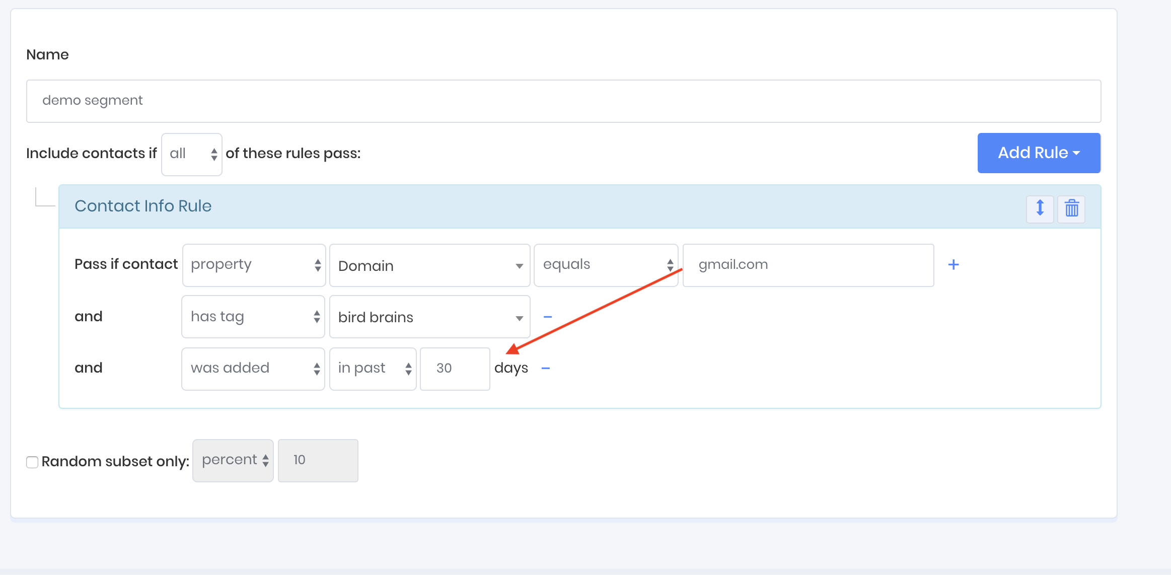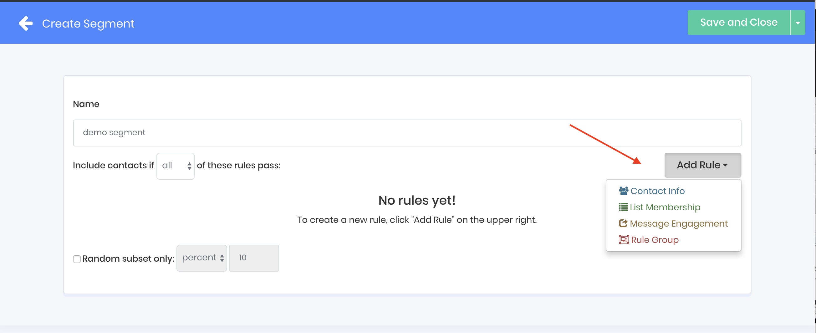 Click the "Save" button in the upper right to save your segment and see the number of contacts found.