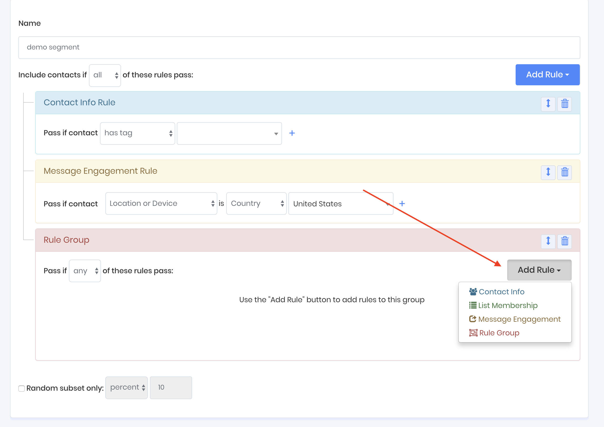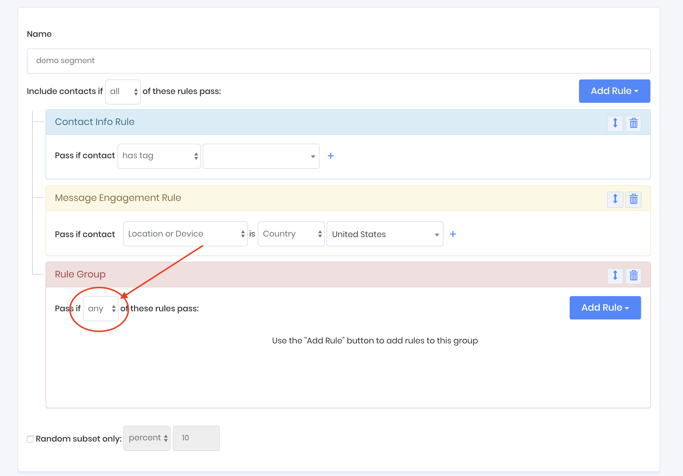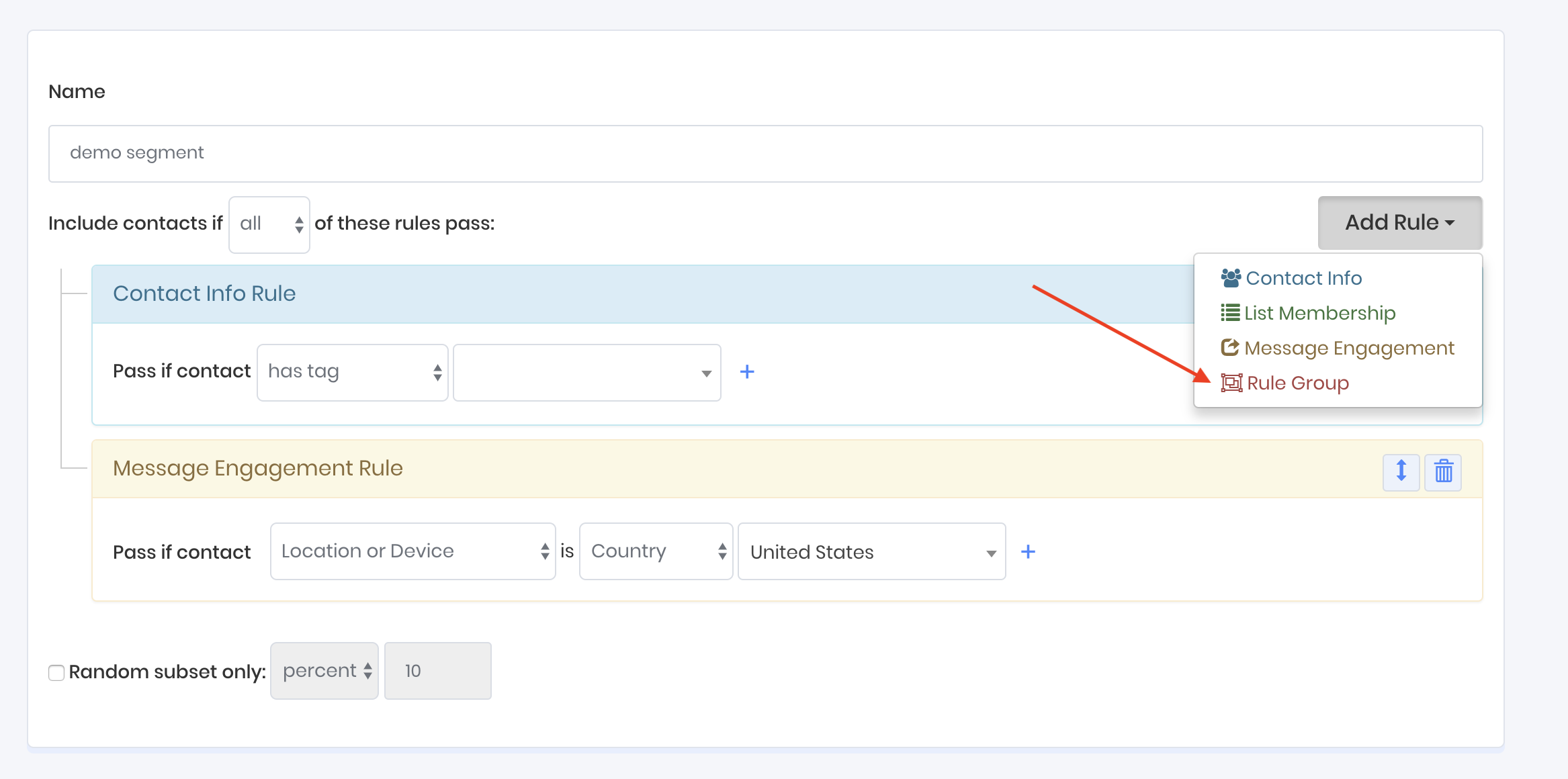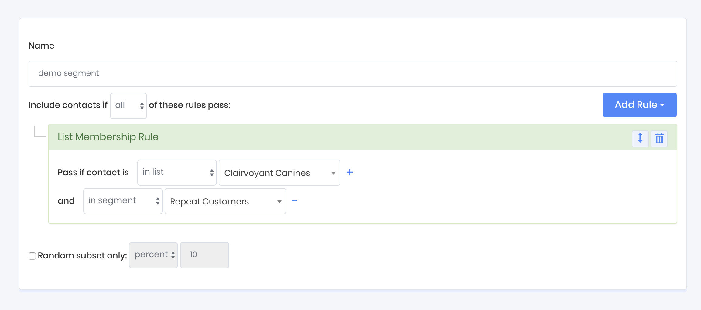 Click the "Save" button in the upper right to save your segment and see the number of contacts found.
