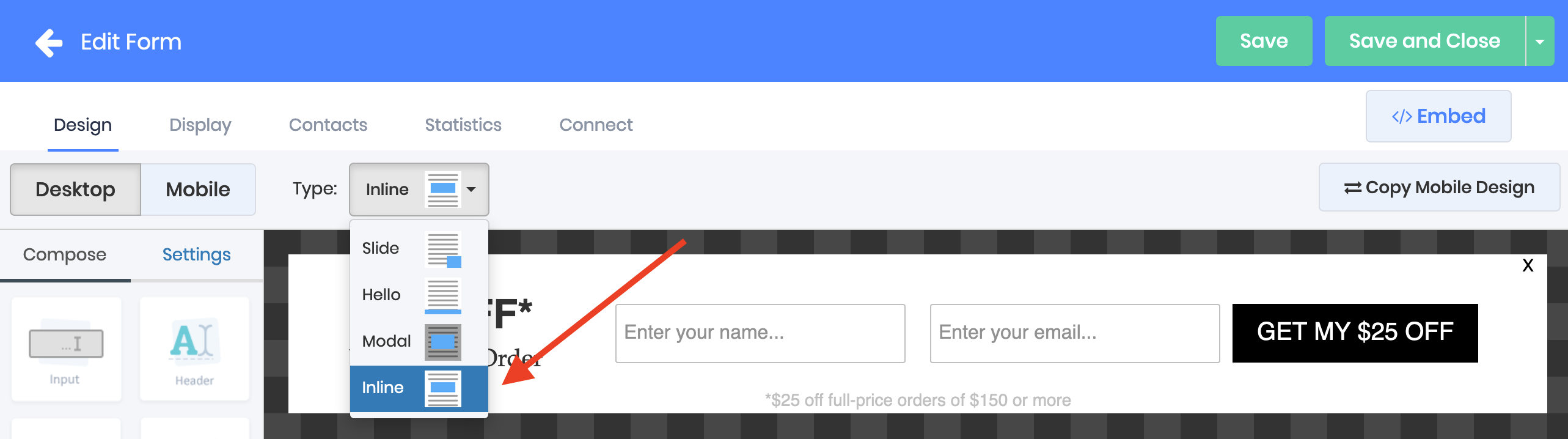 📋Choosing your form type: floating bars, lightboxes,inline naked embedded, slide outs