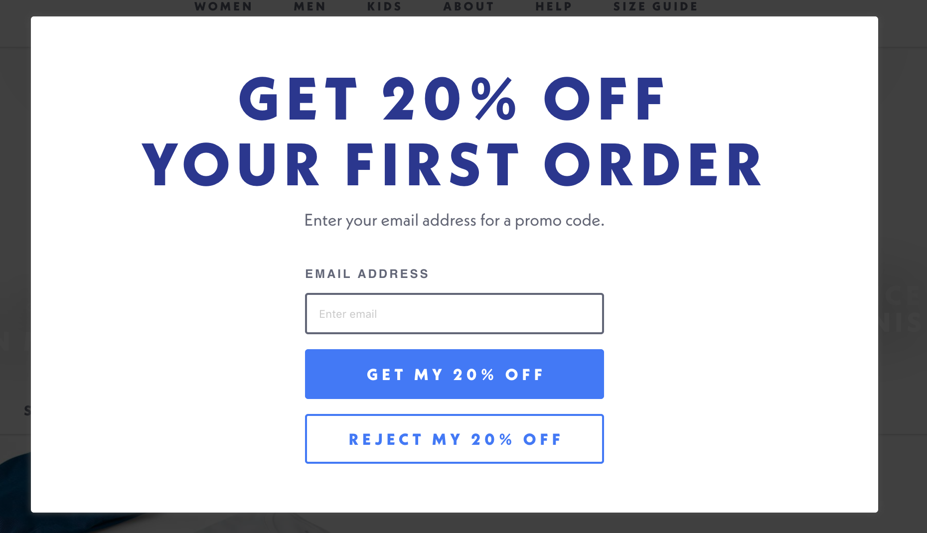 Modal forms, often also known as lightboxes or popups, darken the background and take over the screen, focusing the visitors entire attention on the form and forcing them to submit their email address or close the form to resume browsing