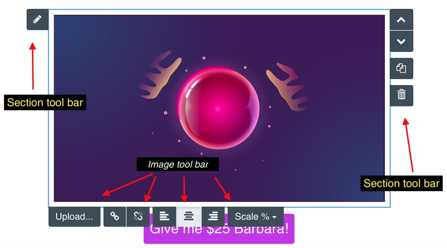 When you click the blue area surrounding a component on the canvas you'll see the section tool bar.